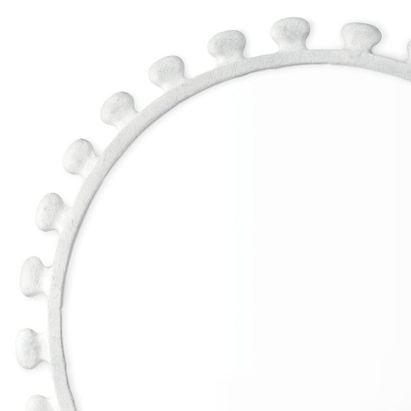 The Sanya Mirror is rich with primitive, sculptural beauty. Sanya's cast metal matte white, paper maché-inspired finish is the perfect match for a modern space with natural elements. Place Sanya in an eclectic living room, boho bedroom, or anywhere a bit of bold, hand-crafted style is needed.