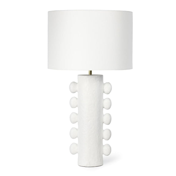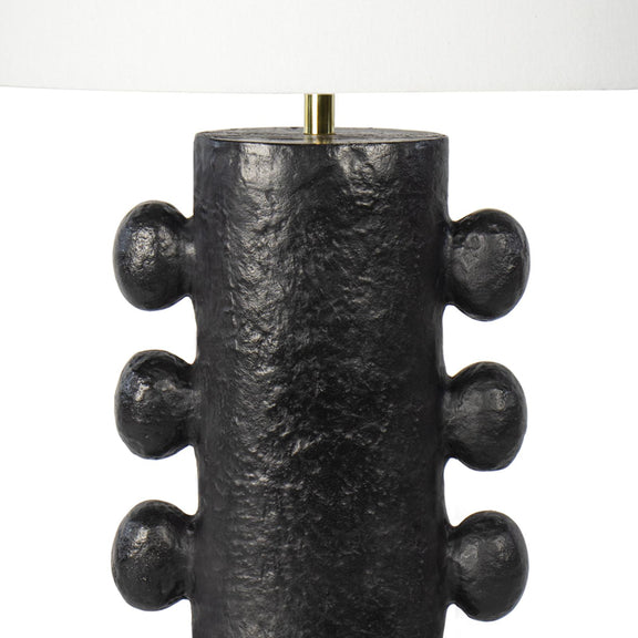 The Sanya Table Lamp is rich with primitive, sculptural beauty. Sanya's cast metal body with a textured paper mache-inspired finish is the perfect match for a modern space with natural elements. Place the Sanya in an eclectic living room, boho bedroom, or anywhere a bit of bold, hand-crafted style is needed.