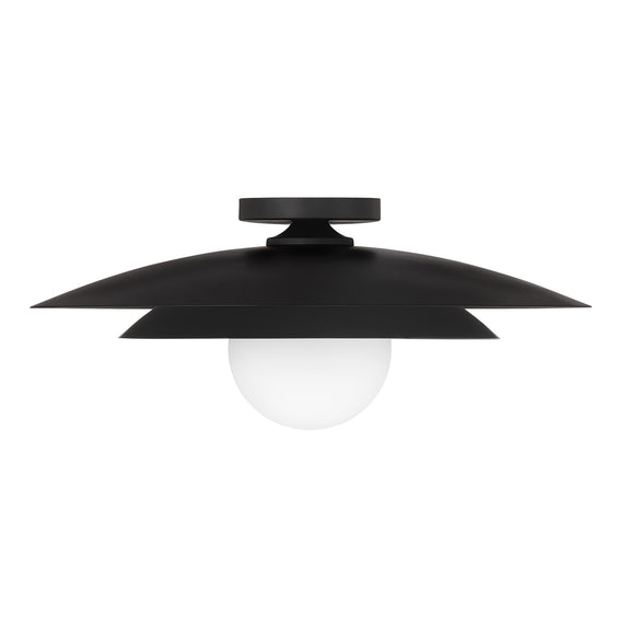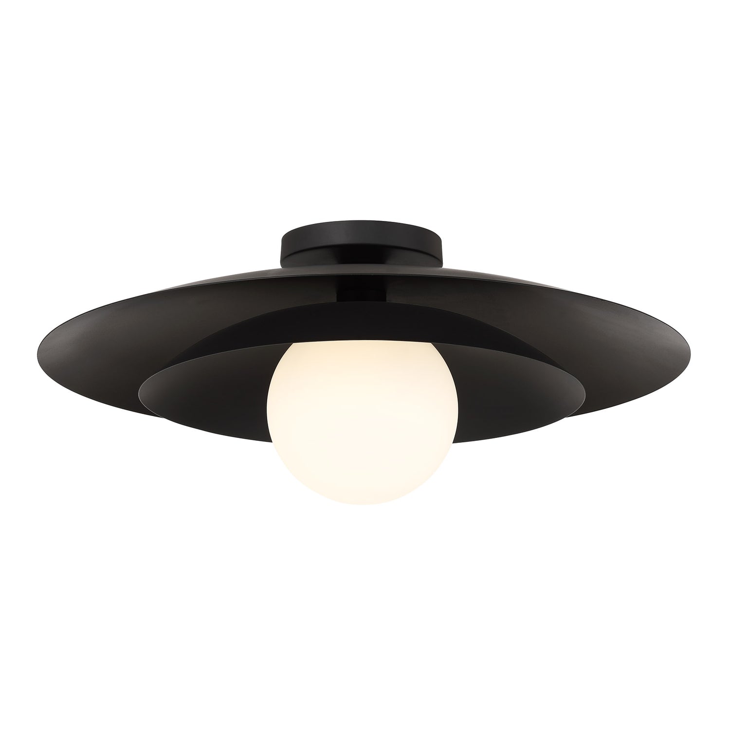 The Savoy House Sherrer 1-light ceiling semi-flush mount allows you to bring an icon of midcentury modern style into any room! It showcases a louvered shade that concentrates and directs the light coming from the white opal glass globe. The Warm Brass finish creates a bright and beautiful glow. Sherrer is 8.5" in height and 20" in width. It uses one candelabra size bulb of up to 60 watts. Bulb not included.
