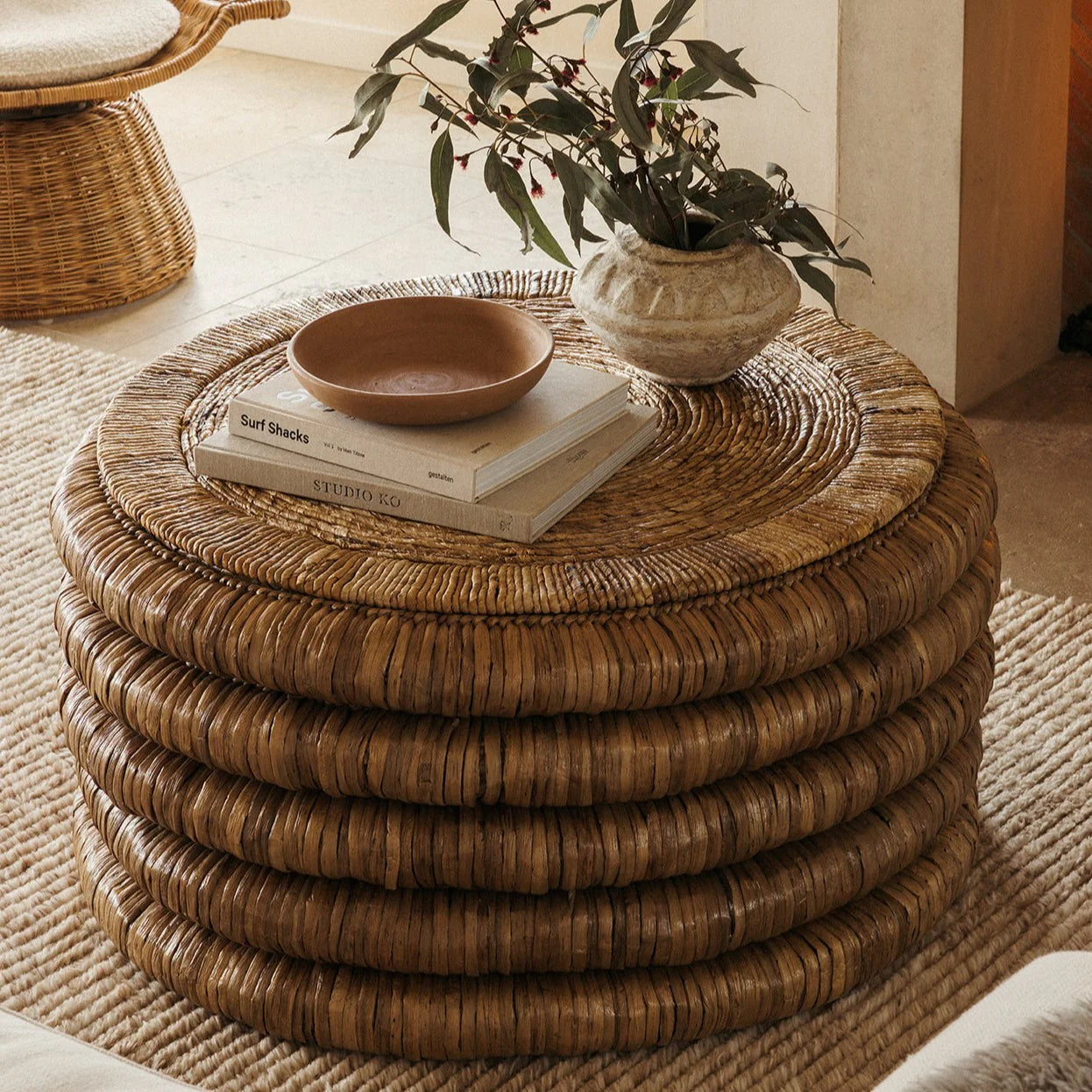 Inspired by New Mexico’s rich tradition of design craft, the Sol Coffee Table bridges old and new worlds. Part of our Museums of New Mexico collaboration, the piece pays homage to the indigenous roots, artisanal techniques, and distinctive style that emerged through the trading routes of Sante Fe. Woven by hand from water hyacinth, the Sol Side Table is sure to add an earthy and organic quality to your space. A percentage of sales of the collection goes back to support educational programs and future exhibitions at the Museum of International Folk Art.
