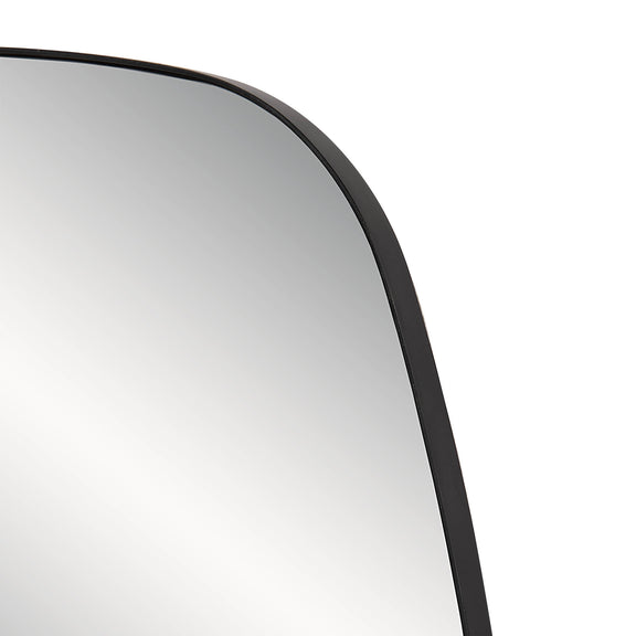 The elegant, polished mirror gets a touch of personality through uniquely rounded edges in this framed design. Set in an entryway space, this mirror offers one a spot to check their reflection before coming and going every day. Thanks to its matte black iron frame, this mirror easily integrates into many interior styles from the industrial and contemporary to the mid-century modern.