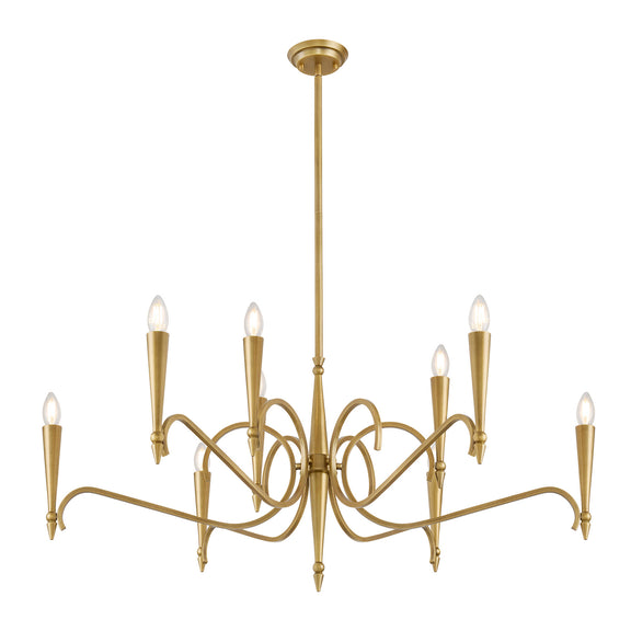Classic style gets an elegant upgrade in the Savoy House Tremont 9-light chandelier! Gracefully curling arms hold tapered candle covers with pointed details, all finished in a richly beautiful Riviera Brass. It is the perfect way to create a bold first impression or illuminate a grand space. Tremont is 38" in width and has an adjustable height ranging from 17.25" to 71.25". It uses nine candelabra size bulbs of up to 60 watts per bulb. Bulbs not included. Comes with four 12" downrods and one 6" downrod.
