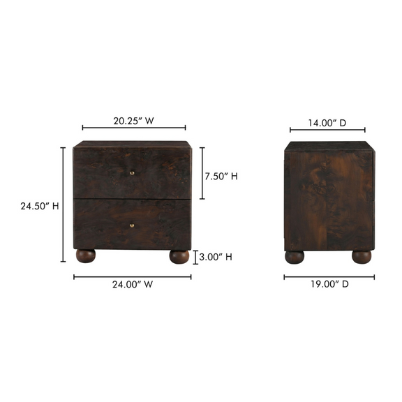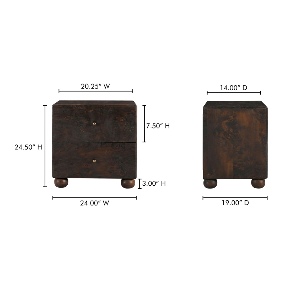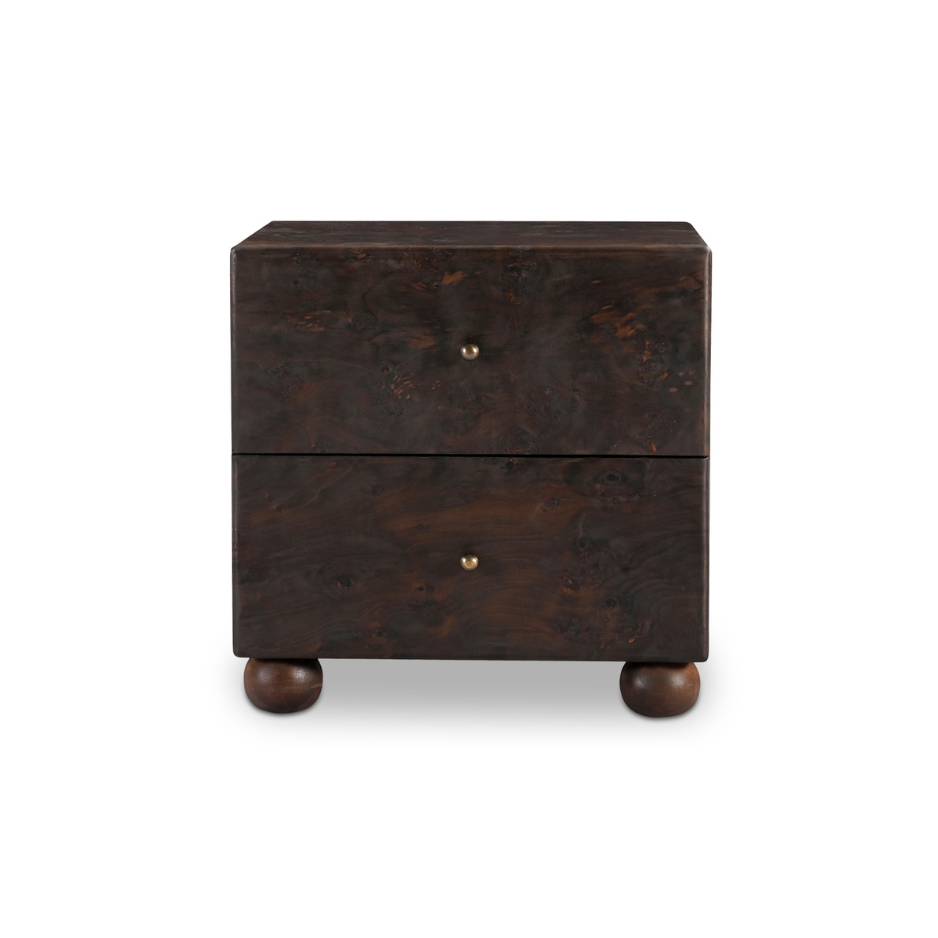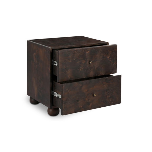 As if it tells a story woven through generations, the York nightstand was born from a profound respect for heritage. With burl veneer and brass detailing, this collection celebrates the beauty and significance of heirlooms passed down through families--designed to be as timeless as the memories they will hold, with the hope that someday, future generations may cherish them.