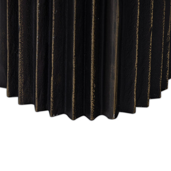 Inspired by our Zara Brass Cuff, our Zara Metal Table Lamp features the same sharp accordion silhouette in blackened brass. Sandcasted in India by multi-generation metal smiths, the dark, patinated finish brings a bit of industrial edge to any décor. A natural linen shade softens the look, so it pairs beautifully in any space that demands a bit of drama.